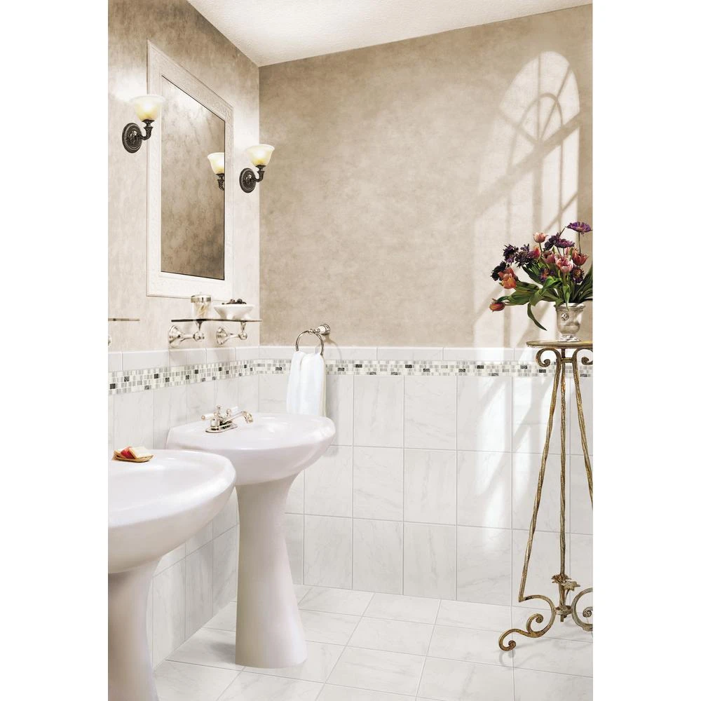 The Daltile 2-5/8 in. x 12 in. Decorative Accent in Carrara White is the perfect addition to the Carrara Collection floor and wall tile. This beautiful accent brings the look of marble to complement and add interest to your floor or wall tile design. This elegant design is perfect for many decorative wall applications including kitchens, bathrooms and living areas as well as residential floors.