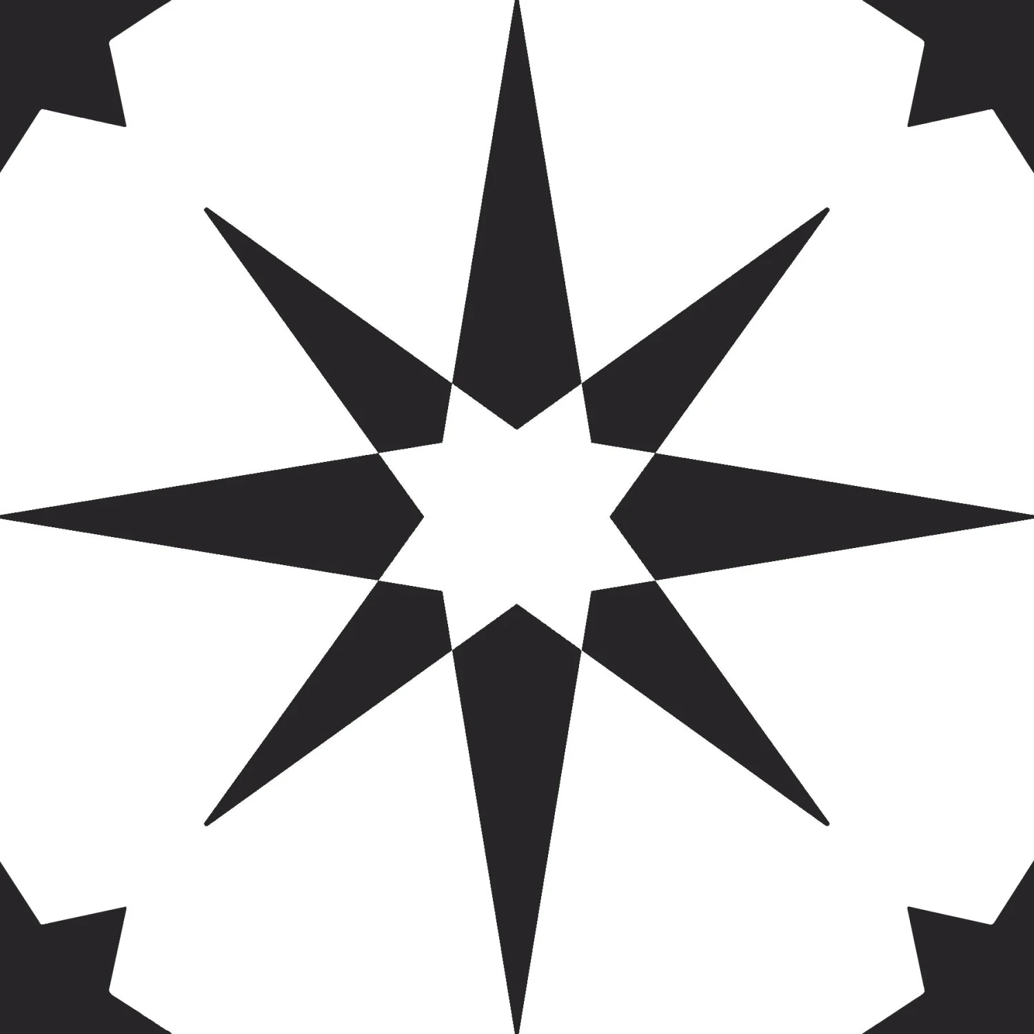 White peel and stick floor tile with a black star motif