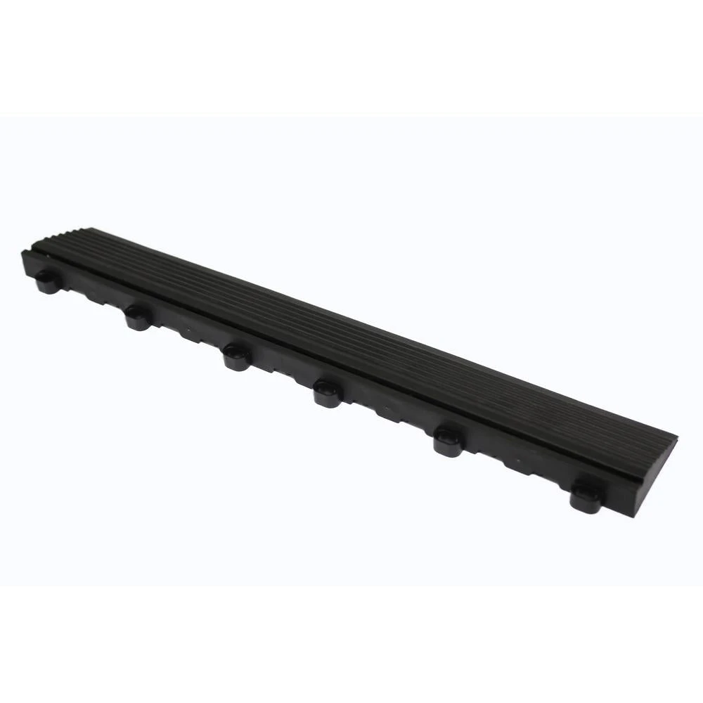 Swisstrax 15.75 in. Looped Edging is for use with Swisstrax 15.75 in. Modular Flooring Tiles only and is the perfect finish for your garage entry or around an entire pad. Encompassing a gentle sloping edge that ramps up to your Swisstrax tiles, edging adds that extra dimension of design to your floor. Available in several colors, use a contrasting color to your floor tile color to create a standout accent. When using 15.75 in. Pegged Edging (female) with your floor, be sure to also see our Corner Edging for 15.75 in. Swisstrax flooring tile to complete the perimeter. NOTE: Depending on your floor design, you may need Swisstrax’s 15.75 in. Pegged Edges (male) instead.