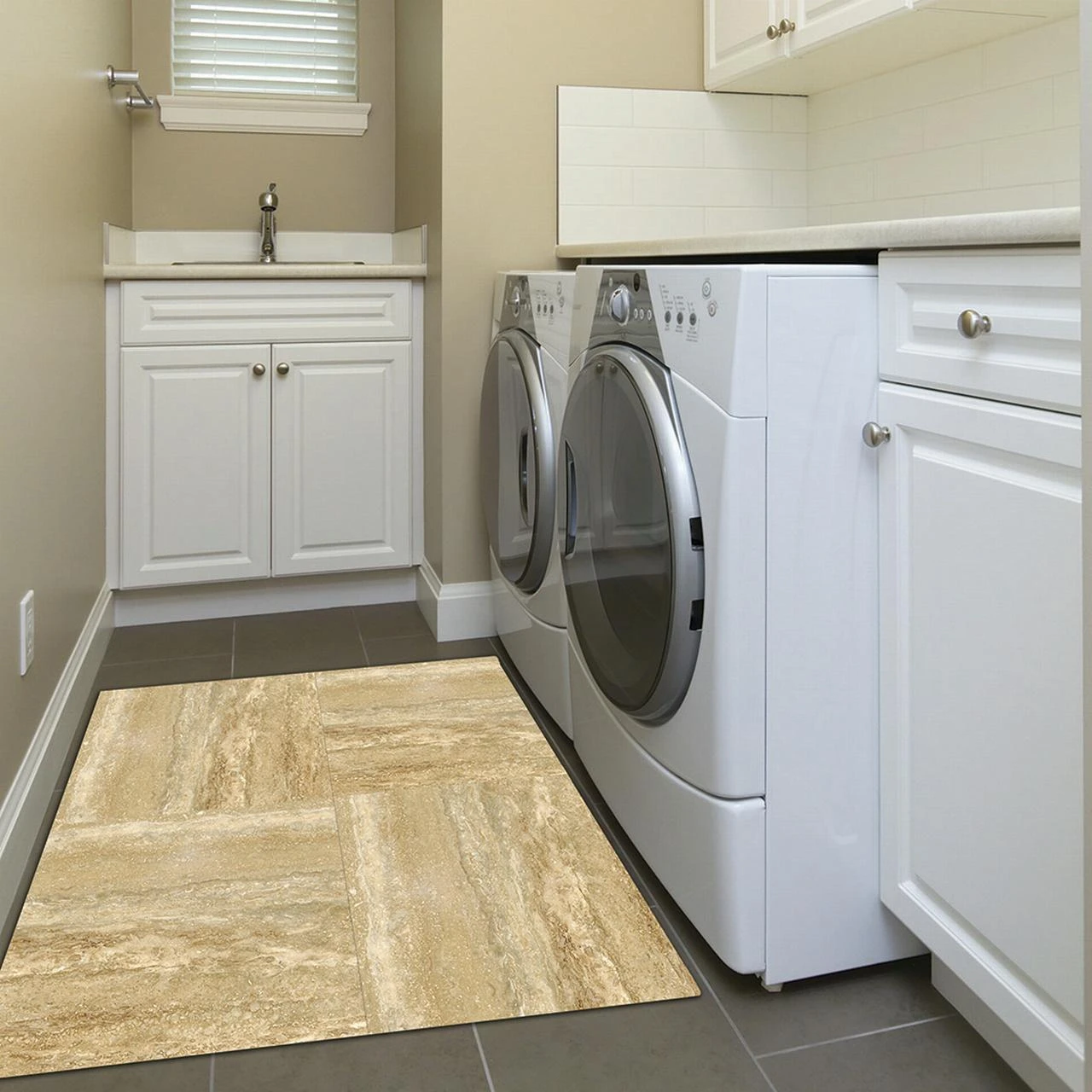 Tavertine Anti-Fatigue Flooring (4pk)This set includes four reversible colored mats and eight straight edge borders to provide a finished, uniformed look. Made from the high quality materials, this design is an extremely flexible interlocking flooring solution. These foam tiles are extremely durable and can be installed similar to other puzzle mats or foam floor tiles with a variety of applications. Utility – laundry room, mud room for comfort and safety. Fitness – perfect for general exercise and intense training. Garage/commercial – anti-fatigue mat for work spaces. Play – safety and comfort for basement and play areas for home, church and school.