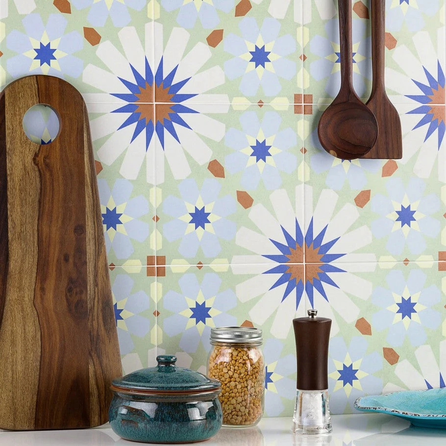 This collection is a unique new series of encaustic cement-look porcelain tile for an artistic flair that is truly one-of-a-kind. Inspired by the rich cultural aesthetic of Mediterranean design. This product contains 20 pieces per box, each box covers 10.76 square feet; This product is approved for Backsplash, Kitchen Floor, Kitchen Wall, Bathroom Floor, Bathroom Wall, Shower Wall, Shower Floor, Outdoor Floor, Outdoor Wall, Commercial Floor use; This product is approved for Indoor and Outdoor, Floor and Wall use.